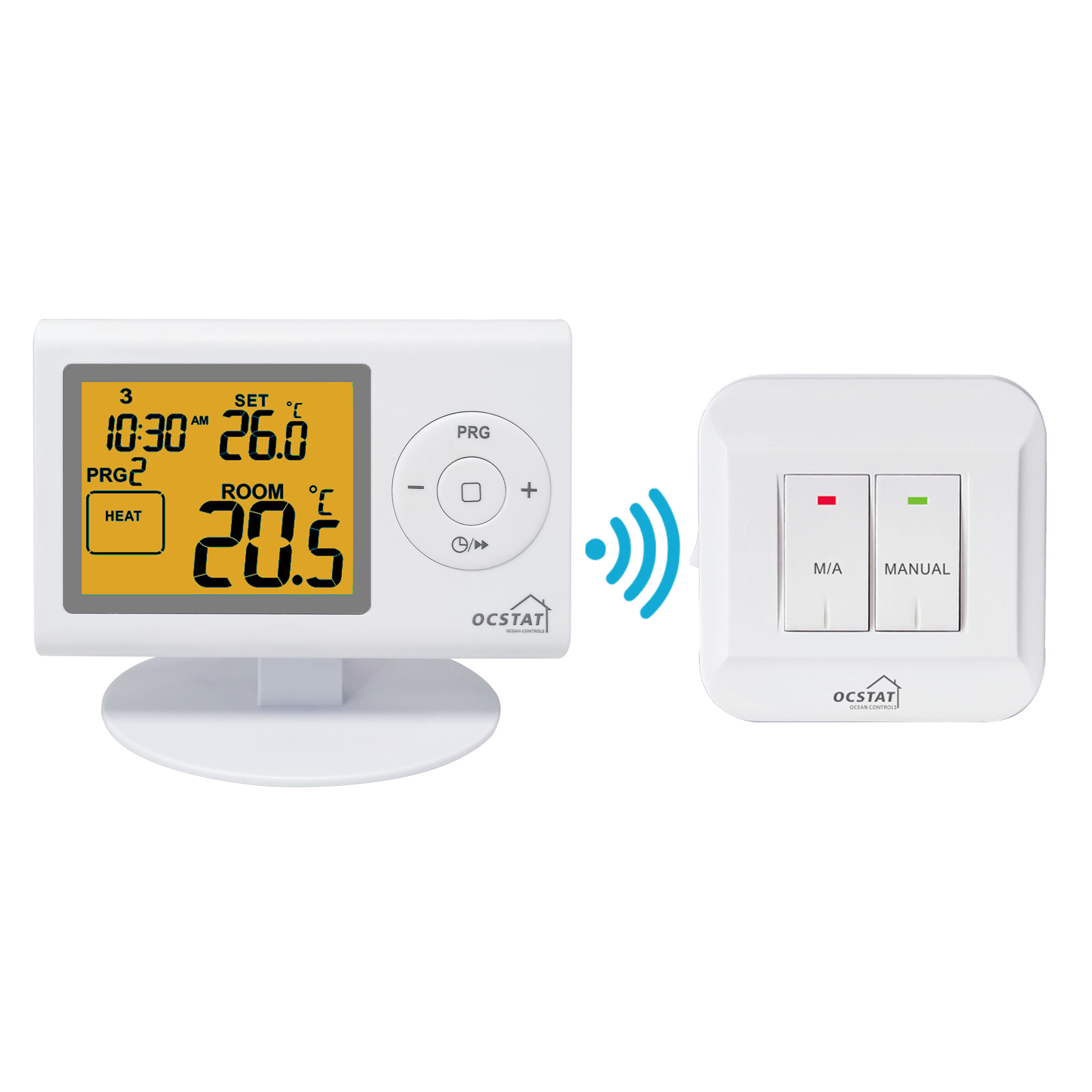 OCSTAT RF रूम थर्मोस्टैट, मॉडल ST2402RF के लिए अनुकूलन योग्य उत्पाद अनुकूलन सेवाएँ प्रदान करता है, जो अधिकांश हीटिंग सिस्टम के साथ काम करने के लिए डिज़ाइन किया गया एक विश्वसनीय डिजिटल रूम थर्मोस्टैट है। चीन से उत्पन्न और CE और ROHS के साथ प्रमाणित, यह इंजन थर्मोस्टैट गुणवत्ता और सुरक्षा मानकों को पूरा करना सुनिश्चित करता है।